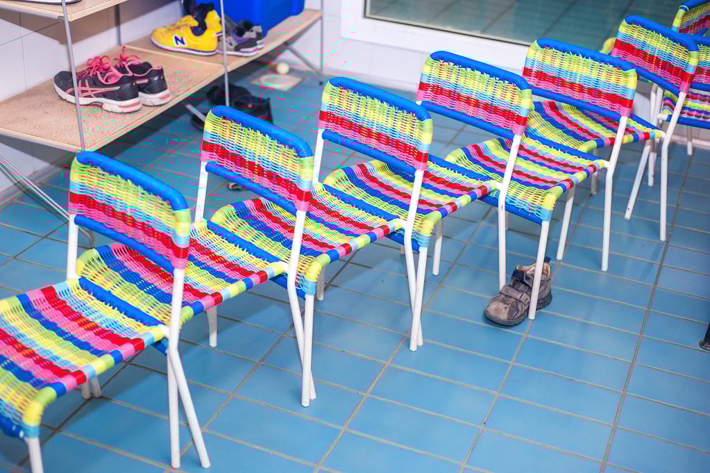 La stanza delle docce ha in centro 4 docce a soffitto e ai lati comode docce “a telefono” che possono essere usate dai piccoli che giocando inizieranno a familiarizzare con questa pratica; è arredata con panche e seggioloni.